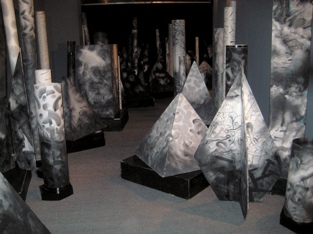 这系列作品所依附的实体为圆柱、