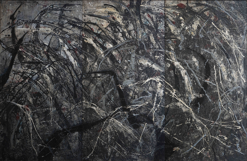 在短笔浓墨的粗直线条的打散与重组中