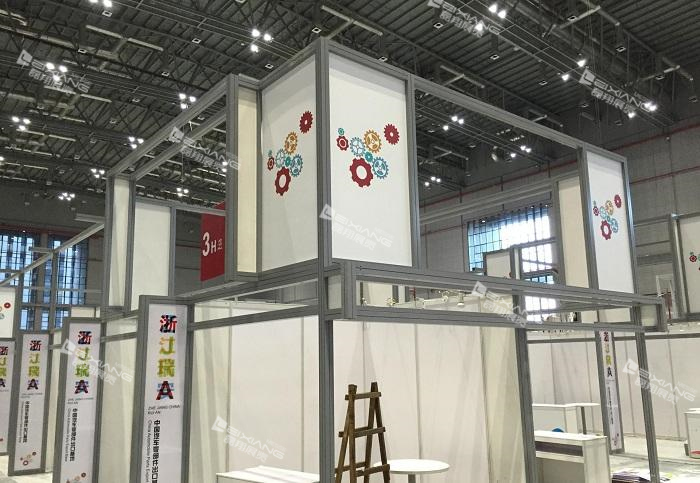 组成结构:早期的型材结构大多是用来做标准展位,以八桶柱,扁铝,板材为组合方式,常规标滩分为9平方和18平方的的标准展位,为小企业提供方便而实惠的参展方式。90年代后,型材被多样化,以铝方柱为主,这种型材结构能让展位的造型更多样化,铝方柱分40、80、120等各种型号。